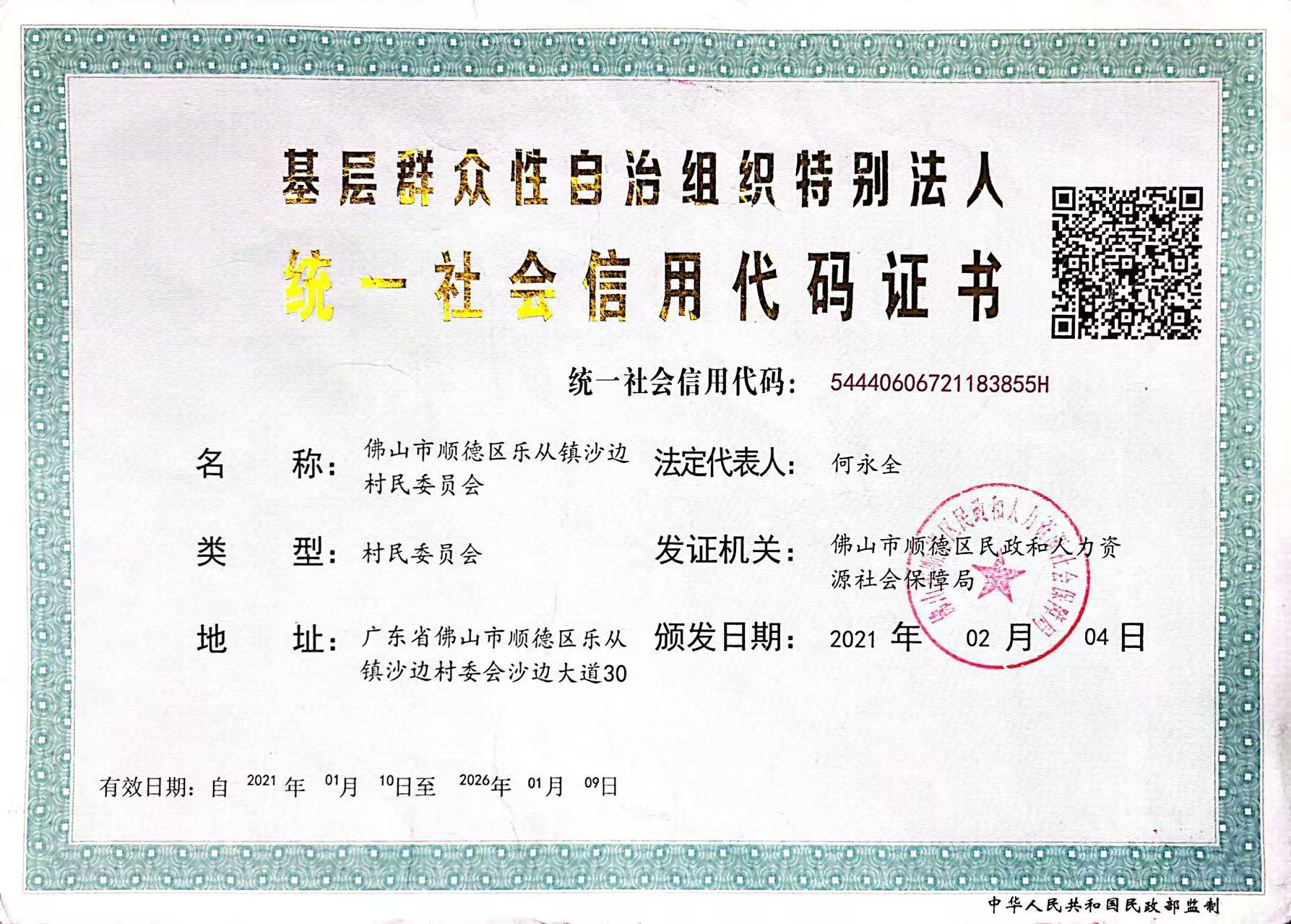 佛山市顺德区乐从镇沙边村民委员会